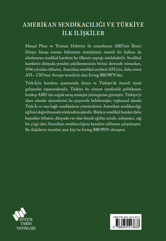 Marshall Planı ve Truman Doktrini ile somutlanan; ABD'nin 2.Dünya Savaşı sonrası hakimiyet stratejisinin önemli bir halkası da, uluslararası sendikal harekete yaptığı müdahaledir.Türk-İş'in kurulma aşamasında Türkiye'de de önemli siyasi gelişmeler yaşanmaktadır ve Türkiye bu süreçte tarafsızlık politikasını terkedip ABD'nin soğuk savaş stratejisinin yörüngesine girmiştir.Ülkeyi yönetenler ,Türk-İş ve ona bağlı sendikaların yöneticilerini de Amerikan Sendikacılığı eğilimi doğrultusunda yönlendirmişlerdir.Bu ilişkilerin temelini atan kişi de Amerikan Sendikalar Federasyonu AFL-CIO'nun Avrupa temsilcisi İrwing Brown'dur.Bu kitap bu ilişkilerin başlangıç dönemini incelemekte ve Brown ile yapılmış geniş bir söyleşiyi içermektedir.