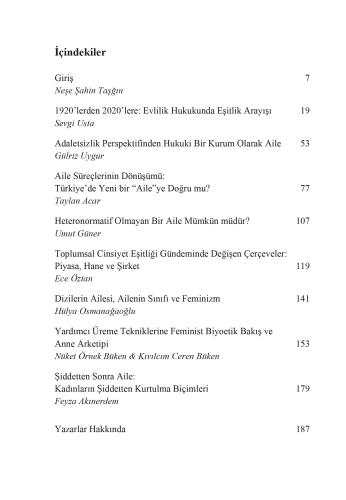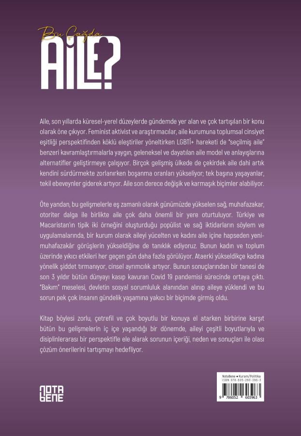 Kitap böylesi zorlu, çetrefil ve çok boyutlu bir konuya el atarken birbirine karşıt bütün bu gelişmelerin iç içe yaşandığı bir dönemde, aileyi çeşitli boyutlarıyla ve disiplinlerarası bir perspektifle ele alarak sorunun içeriği, neden ve sonuçları ile olası çözüm önerilerini tartışmayı hedefliyor.