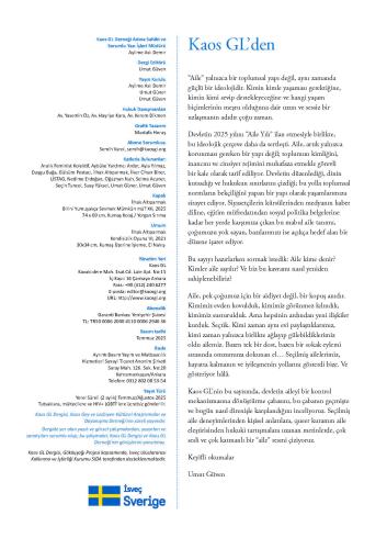 Kaos GL’nin bu sayısında, devletin aileyi bir kontrol mekanizmasına dönüştürme çabasını, bu çabanın geçmişte ve bugün nasıl direnişle karşılandığını inceliyoruz. Seçilmiş aile deneyimlerinden kişisel anlatılara, queer kuramın aile eleştirisinden hukuki tartışmalara uzanan metinlerde, çok sesli ve çok katmanlı bir “aile” resmi çiziyoruz.