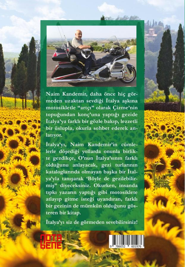 Naim Kandemir, daha önce hiç görmeden uzaktan sevdiği İtalya aşkına motosikletle “artçı” olarak Çizme’nin topuğundan konç’una yaptığı gezide İtalya’ya farklı bir gözle bakıp, lezzetli bir üslupla, okurla sohbet ederek anlatıyor. İtalya’yı, Naim Kandemir’in cümlelerle döşediği yollarda onunla birlikte gezdikçe, O’nun İtalya’sının farklı olduğunu anlayacak, gezi turlarının kataloglarında olmayan başka bir İtalya’yla tanışarak ‘Böyle de gezilebilirmiş” diyeceksiniz. Okurken, insanda tıpkı yazarın yaptığı gibi motosiklete atlayıp gitme isteği uyandıran, farklı bir gezinin de mümkün olduğunu gösteren bir kitap. İtalya’yı siz de görmeden sevebilirsiniz!