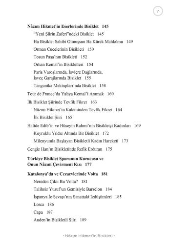 Ayrıca dayısı Mustafa Celalettin’in şampiyonluklarına, oğlu Mehmet Nâzım’ın bisiklet maceralarına, yeğeni Ayşe Yaltırım’ın şiire konu olmuş bisiklet merakına, Memet Fuat’ın ev yapımı bisiklet öykülerine tanık olacaksınız.