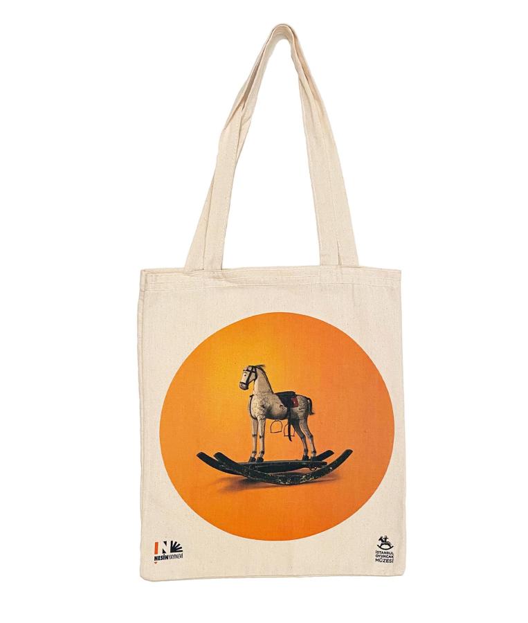 Kitaplarınız ve oyuncaklar hep sizinle olsun istedik ve bu temayı zamansız bir oyuncakla, sallanan bir tahta atla bez çantamıza taşıdık.