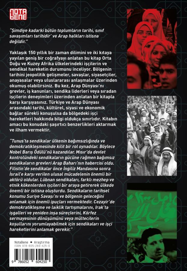 “Tunus’ta sendikalar ülkenin bağımsızlığında ve demokratikleşmesinde kilit bir rol oynadılar. Böylece Nobel Barış Ödülü’nü kazandılar. Mısır’da devlet kontrolündeki sendikaların gücüne rağmen bağımsız sendikaların grevleri Arap Baharı’nın habercisi oldu. Filistin’de sendikalar önce İngiliz Mandasına sonra İsrail’e karşı verilen ulusal mücadelenin önemli bir aktörü oldular. Lübnan sendikaları, farklı mezhep ve etnik kökenlerden işçileri bir araya getirerek ülkede önemli bir istisna oluşturdu. Sendikaların tarihsel konumu Suriye Savaşı’nı ve bölgenin geleceğini anlamak için önemli ipuçları vermektedir. Cezayir’de demokratikleşme ve laiklik tartışmalarını, Irak’ta işgalleri ve yeniden inşa süreçlerini, Körfez sermayesinin dönüşümünü veya mültecilerin koşullarını yorumlayabilmek için sendikaları ve işçi hareketlerini anlamak gerekir.”