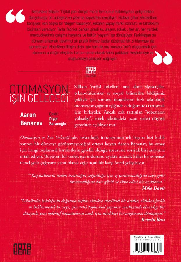 “Benanav, otomasyonun işi ortadan kaldırdığı fikrini inceliyor ve çürütüyor… Robotların tüm işi yapmasını beklememize gerek yok; neye ihtiyacımız olduğuna kolektif olarak karar verebilir, sonrasında ise bunu başarmak için ekonomiyi planlayabiliriz.”