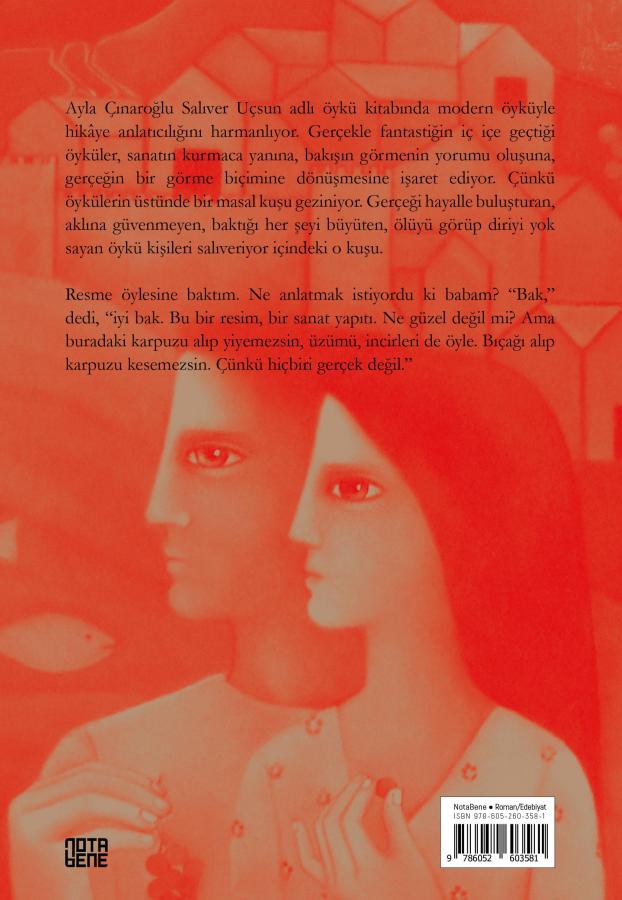 Ayla ÇınaroğluSalıver Uçsunadlı öykü kitabında modern öyküylehikâye anlatıcılığını harmanlıyor. Gerçekle fantastiğin iç içe geçtiği öyküler, sanatın kurmaca yanına, bakışın görmenin yorumu oluşuna, gerçeğin bir görme biçimine dönüşmesine işaret ediyor. Çünkü öykülerin üstünde bir masal kuşu geziniyor. Gerçeği hayalle buluşturan, aklına güvenmeyen, baktığı her şeyi büyüten, ölüyü görüp diriyi yok sayan öykü kişileri salıveriyor içindeki o kuşu.