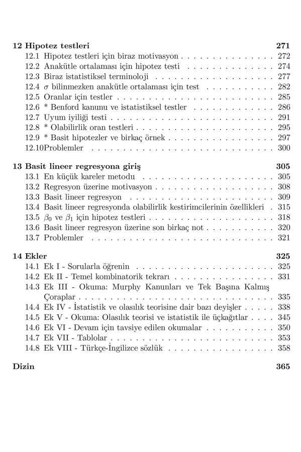 “Temel Olasılık Teorisi ve İstatistik I” isimli bu kitap, giriş seviyesi kalkülüse hakim ve matematiksel ispatlar ile temel düzeyde aşina olan okurlara hitap etmektedir. Kitabın amacı, günümüz dünyasında hemen her alanda başvurulan olasılıksal ve istatistiksel metotları, kariyerinin henüz başındaki öğrencilerin anlayabileceği bir dille anlatırken, öğrencileri aynı zamanda da ispatlara ve matematiksel düşünmeye ısındırmaktır. Matematik ve istatistik bölümü öğrencileri dışında veri bilimi, bilgisayar bilimi gibi sahalara ilgi duyan okurlara da faydalı olması hedeflenmektedir. Kitapta olasılık teorisine dair, olasılık dağılımları, büyük sayılar kanunu ve merkezi limit teoremi gibi konular yer alırken, istatistik üzerine ise olabilirlik kestirimleri, güven aralıkları, hipotez testleri, regresyon konuları kitabın kapsamına dahil edilmiştir. Kitap boyunca farklı uygulama sahalarına dair referanslar, seçme konular üzerine okumalar ve 200’den fazla alıştırma yer almaktadır.