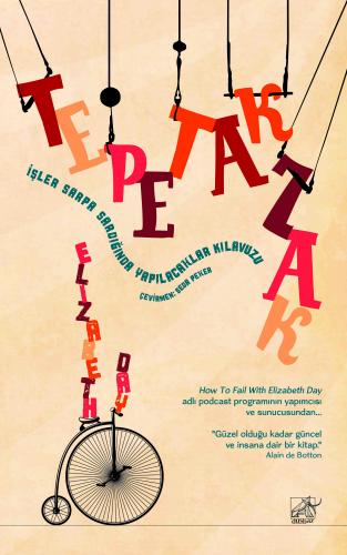 Tepetaklak: İşler Sarpa Sardığında Yapılacaklar Kılavuzu'nda Elizabeth Day, büyük başarı yakaladığı How To Fail With Elizabeth Day adlı podcast programına katılan konuklarıyla yaptıkları sohbetlerinden, kendi hayat deneyimlerinden, okurlarının ve dinleyicilerinin paylaştığı hikâyelerden biriktirdiklerini başarısızlık süzgecinden geçirip Başarısızlığın Yedi İlkesi'ni bizlerle buluşturuyor. Malcolm Gladwell, Alain de Botton, Phoebe Waller-Bridge, Lemn Sissay, Nigel Slater, Emeli Sandé, Meera Syal, Dame Kelly Holmes, Andrew Scott'un başarısızlıklarını paylaşıyor. Futbolculardan psikoterapistlere, politikacılardan pop yıldızlarına, oyunculardan yazarlara, pek çok insanın deneyimine kulak verirken en önemlisi kendinizi keşfedip kendi başarısızlıklarınızla yüzleşmenizi sağlıyor ve bunları başarıya dönüştürmenin yollarını öğretiyor.
