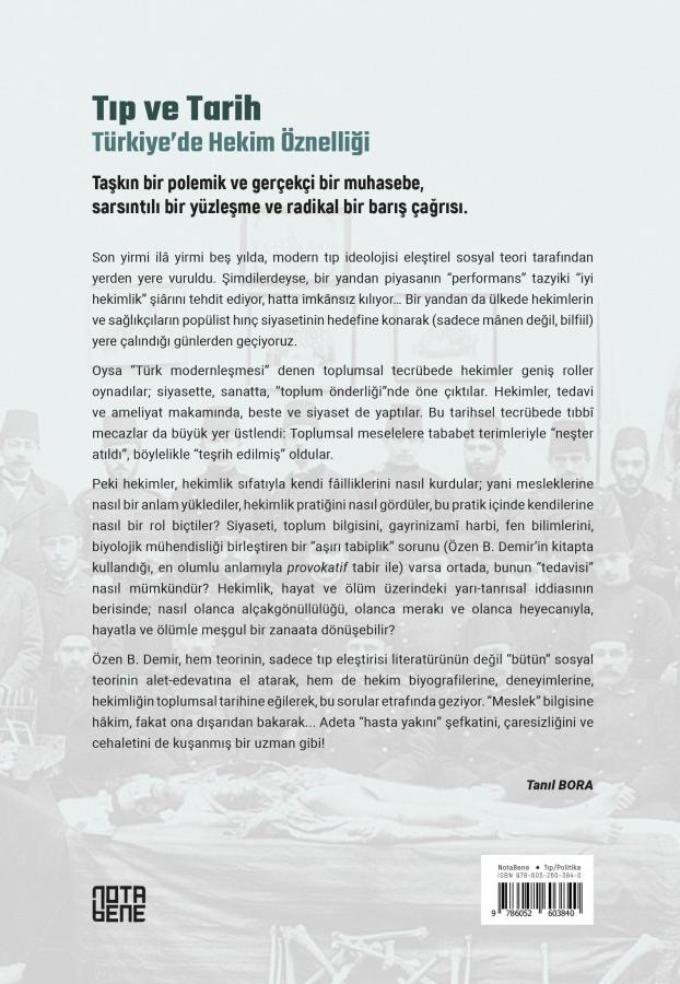 Özen B. Demir, hem teorinin, sadece tıp eleştirisi literatürünün değil “bütün” sosyal teorinin alet-edevatına el atarak, hem de hekim biyografilerine, deneyimlerine, hekimliğin toplumsal tarihine eğilerek, bu sorular etrafında geziyor. “Meslek” bilgisine hâkim, fakat ona dışarıdan bakarak… Adeta “hasta yakını” şefkatini, çaresizliğini ve cehaletini de kuşanmış bir uzman gibi! - Tanıl BORA