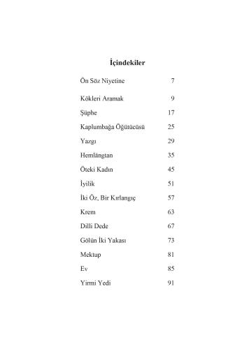 Kitaptaki öyküler, kendisi de bir göçmen olan yazarın psikolog sıfatıyla göçmen ve mültecilerle temas ettiği dört yıllık macerasının izlerini taşıyor. Yuva ve göç temalarının merkeze yerleştiği bu öykülerde yabancı olmanın, aidiyet duygusundan kopmanın ve her şeye rağmen tutunacak bir dal aramanın burukluğu kendini hissettiriyor. Yer yer düş ile gerçeğin birbirine karıştığı; anlatıcının karakter, karakterin yazar oluverdiği geçişler öyküleri dinamik kılıyor.