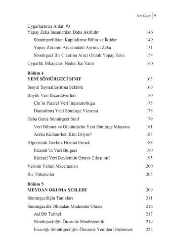 Ulises A. Mejias ve Nick Couldry'nin bu ufuk açıcı kitapta gösterdiği gibi, bu muazzam veri birikimi hızla büyüyen bir endüstrinin tesadüfi sonucu değildir. Tıpkı ulusların haksız yere zenginlik ve hakimiyet için toprak ve maden çalması gibi teknoloji şirketleri de hayatlarımız için önemli olan kişisel verileri çalıyor. Mejias ve Couldry, bu soygunun tüm kapsamını ancak sömürgecilik çerçevesinde kavrayabileceğimizi savunuyor.
