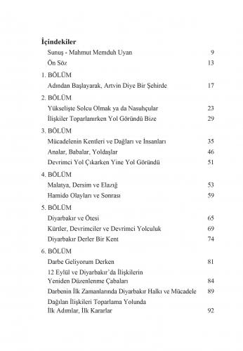 Artvin, yeniden Ankara, Elazığ, Malatya, Diyarbakır… Dağlar, yollar… Artvin’de orman köylülerinin örgütlenmesi, Elazığ’da anti faşist mücadele, Dersim’de gerilla mücadelesi arayışları… Diyarbakır, Kürtler, devrimcilere her durumda kol kanat olan Diyarbakırlılar var öyküde… Orhan Keskin, İsmail Kıran, Vahap Atılgan, Kenan Gürsey ve Erdinç Coşkun var.