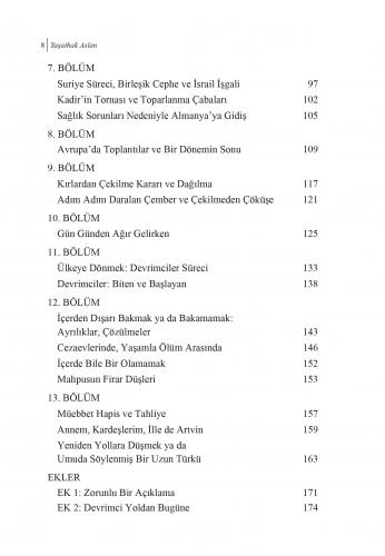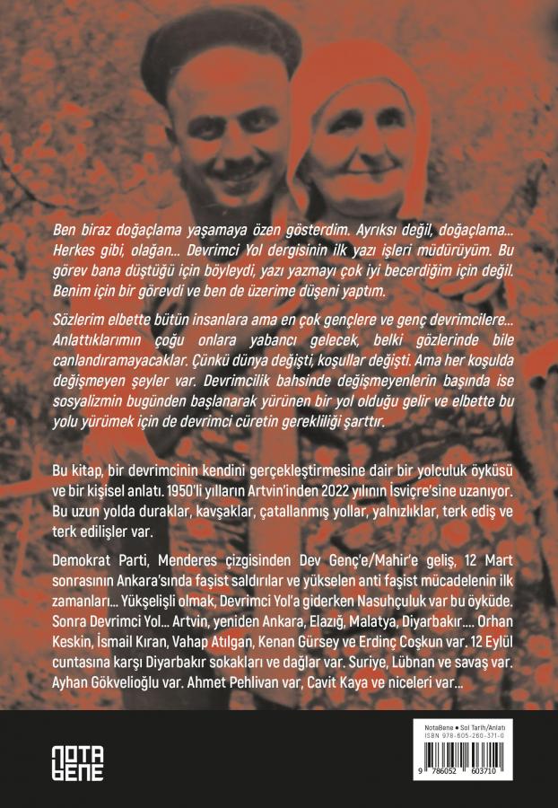 Bu kitap, bir devrimcinin kendini gerçekleştirmesine dair bir yolculuk öyküsü ve bir kişisel anlatı. 1950’li yılların Artvin’inden 2022 yılının İsviçre’sine uzanıyor. Bu uzun yolculukta duraklar, kavşaklar, çatallanmış yollar, yalnızlıklar, terk ediş ve terk edilişler var.