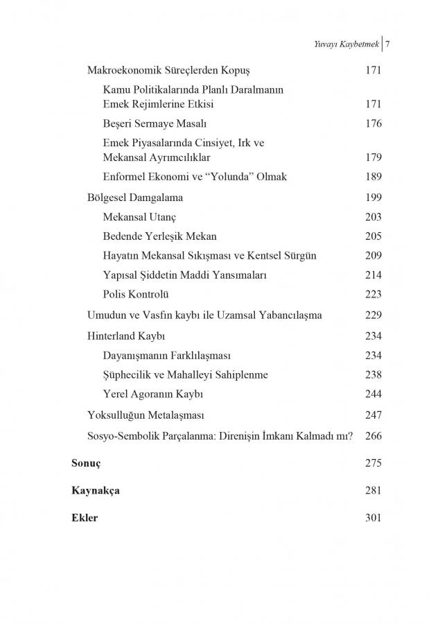Yuvayı Kaybetmek, ileri marjinalliğin karşılaştırmalı coğrafyasında konut sorununu sosyal politika perspektifinden ele almaktadır. Önceki çalışmalardan farklı olarak hem Fransa'da hem de Türkiye'de, “adı kötüye çıkmış”, “tehlikeli” mahalleleri Wacquant'ın metodolojisiyle inceleme nesnesi yaparak yoksulluğun görünmeyen yüzlerine ışık tutmaktadır. Devletin sağ ve sol eli kavramsallaştırmasından yola çıkarak bedenlere, mekanlara, göçmenlik deneyimlerine, üretim rejimlerindeki dönüşümlere, sosyal politikalara, konut sorununa ve yoksulluğa ekonomi-politik bir bakışla eğilmektedir. Kent yoksulluğunu tarihsel ve mekansal bir inşa temelinde ele alan çalışma, yoksulluğun evrensel olarak benzeştiğini, kentin sürgün bölgelerinin devletler eliyle inşa edildiğini ve konut sorunundan çıkışın yolları olabileceğini vurgulamaktadır. Kısacası kitap sorunun failini ararken üretim ilişkilerine, sosyal politikalardaki dönüşüme, beden politikalarına, polis gücüne varıyor ve soruyor: Direnişin imkanı var mı?